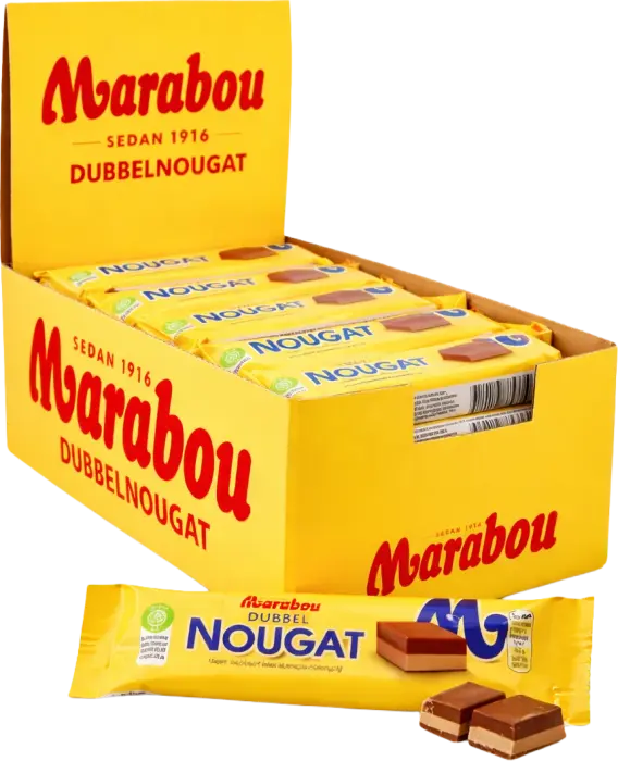 Socker, HASSELNÖTTER/-NØDDER (18%), vegetabiliskt fett/fedtstoffer (palm/palme, shea), MANDEL (9,5%), vassle-/vallepulver (MJÖLK/MÆLK), kakaomassa, kakaosmör, SKUMMJÖLKS-/SKUMMETMÆLKSPULVER, SMÖRFETT/SMØROLIE, emulgeringsmedel/emulgatorer (SOJALECITIN, E476), aromer. KAN INNEHÅLLA JORDNÖTTER, ÄGG OCH VETE/JORDNØDDER, ÆG OG HVEDE.