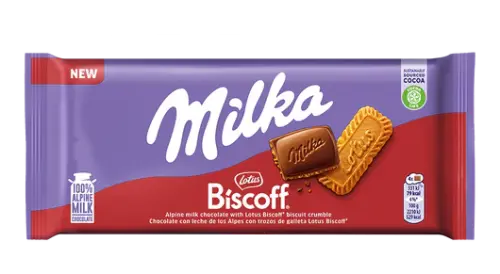 Milka Lotus Biscoff kombinerer cremet alpemælkschokolade med krummer af den ikoniske Lotus Biscoff-kiks – karamellet, krydret og med den umiddelbart genkendelige Biscoff-smag bagt ind i hvert stykke. To elskede klassikere der endelig har fundet hinanden. 🍫🍪
