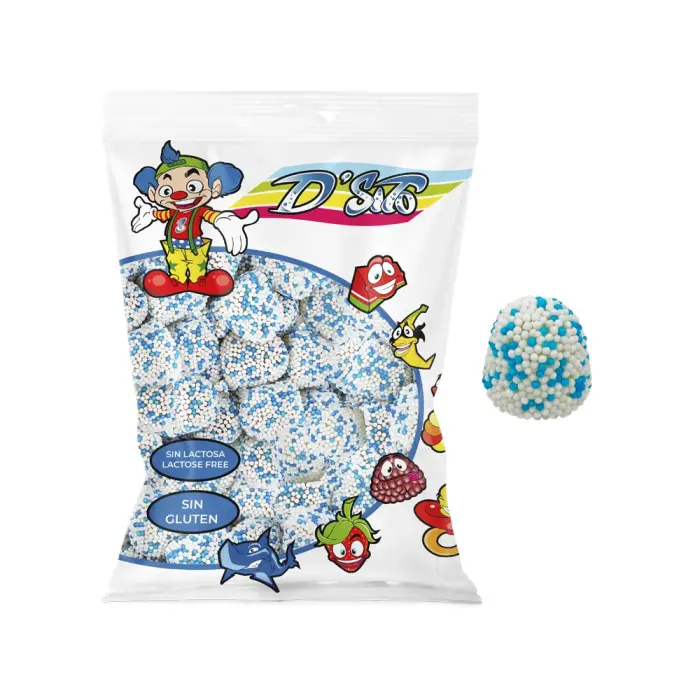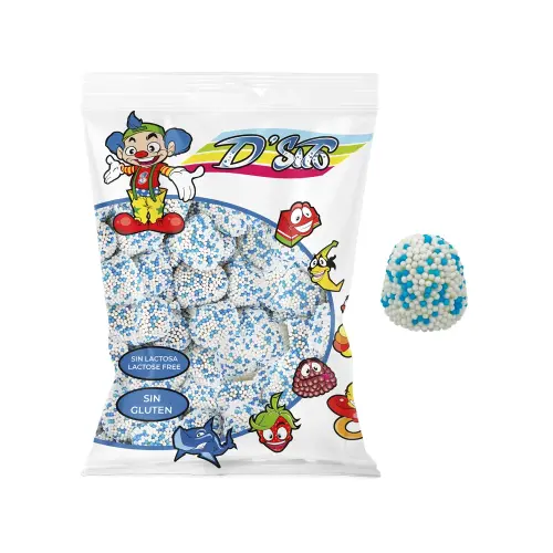 Blå kugler med sukker! D'Sito er geléslikket med blød gelé indeni dækket med et lag perlesukker. Bløde, søde og farverige - laktosefri og glutenfri. Perfekt til børn, der vil have noget farverigt og anderledes, eller til fester! 💙✨