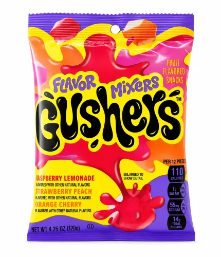 Gushers Flavor Mixers er de ikoniske frugtgodter med flydende fyld der sprøjter ud ved første bid – nu med tre smage i samme pose: hindbær limonade, jordbær fersken og appelsin kirsebær. Blandet, frugtig og lige så eksplosivt godt som altid. 🍓🍊💥