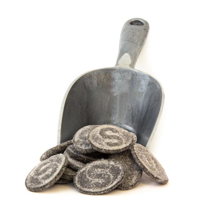 glukos, socker, gelatin(nöt), ammoniumklorid, lakrits, färgämne(vegetabiliskt kol), aromer